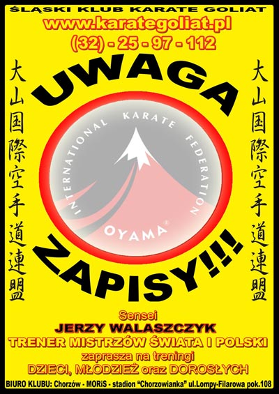 Największy na Śląsku klub karate ogłosił zapisy. Klub ma swoje sekcje w Katowicach, Siemianowicach Śląskich, Chorzowie, Tychach, Orzeszu, Rudzie Śląskiej, Bytomiu, Mikołowie, Łaziskach oraz Gliwicach. Ponadto prowadzi także sekcję Aikido. Od 1996 roku zawodnicy tego klubu zdobyli ponad 870 medali w Polsce i za granicą, m.in. mistrzostwo świata w Full Contact Karate osiągnięte przez Danutę Fydek.