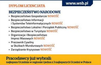 Chorzowski Wydział Zamiejscowy Wyższej Szkoły Bankowej w Poznaniu otrzymał uprawnienia do prowadzenia studiów I stopnia na kierunku Bezpieczeństwo Narodowe.