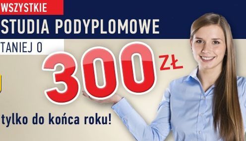 do końca roku czeka bonifikata w wysokości 300 zł na wszystkich kierunkach studiów podyplomowych!W ofercie znajdują się studia podyplomowe z zakresu:- coachingu,