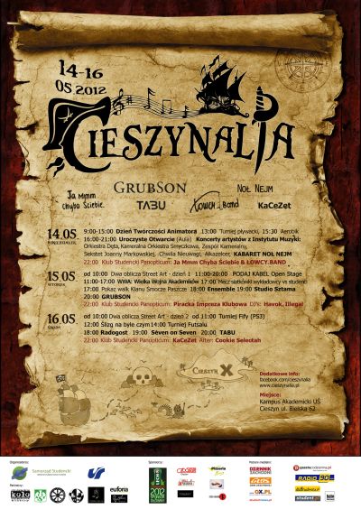 Serdecznie zapraszamy na festiwal kultury studenckiej "Cieszynalia 2012", który potrwa od 14 do 16 maja.