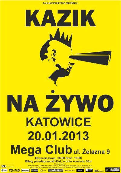 Katowice – 20.01.2013 – Mega Club ul. Żelazna 9. Otwarcie bram: 18:00 Start: 19:00. Bilety przedsprzedaż 45zł, w dniu koncertu 55zł.