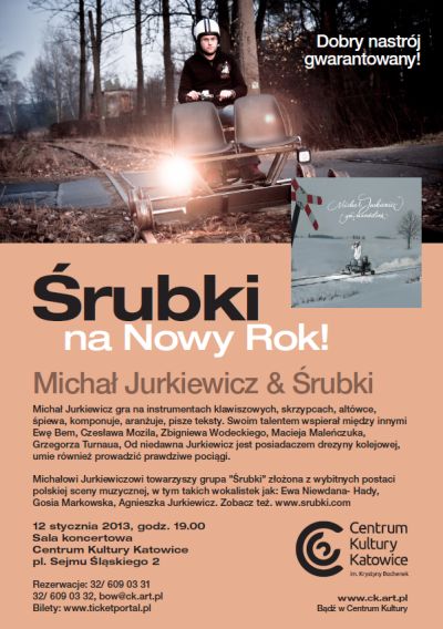 Michał Jurkiewicz - wokalista, pianista, skrzypek, autor tekstów, producent muzyczny, piosenkarz; członek zespołów Grzegorza Turnaua i Andrzeja Sikorowskiego, miłośnik kolei. Artysta pochodzi z Rzeszowa, jest absolwentem Akademii Muzycznej w Krakowie. Gra na instrumentach klawiszowych, skrzypcach, altówce, śpiewa, komponuje, aranżuje, pisze teksty. Jako muzyk sesyjny brał udział w nagraniu wielu płyt z udziałem Ewy Bem, Czesława Mozila, Zbigniewa Wodeckiego, Macieja Maleńczuka, Grzegorza Turnaua, Andrzeja Sikorowskiego, Grzegorza Markowskiego, Hanny Banaszak, Stanisława Soyki oraz innych artystów. Jest założycielem muzycznej grupy „Śrubki”, pierwsza autorska płyta ukazała się na początku 2010 roku.