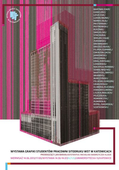 14 czerwca o godz. 17.00 odbędzie się wernisaż wystawy grafik studentów pracowni sitodruku Wyższej Szkoły Technicznej w Katowicach.