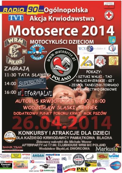 Po raz szósty w Wodzisławiu Śląskim odbędzie się Ogólnopolska Akcja Krwiodawstwa MOTOSERCE. „Motocykliści dzieciom” to hasło towarzyszące akcji, podczas której przez kilka godzin będzie możliwość oddania krwi, a tym samym pomocy potrzebującym.
