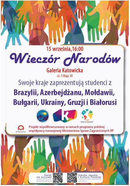15 września 2015 roku od godz. 16.00 na poziomie +2 Galerii Katowickiej odbędzie się Wieczór Narodów, zorganizowany przez Szkołę Języka i Kultury Polskiej Uniwersytetu Śląskiego oraz Instytucję Kultury Katowice – Miasto Ogrodów. Wystąpią studenci uczestniczący w kursie językowo-adaptacyjnym dla stypendystów programu im. Stefana Banacha, którzy od października rozpoczną studia na uczelniach w całej Polsce.