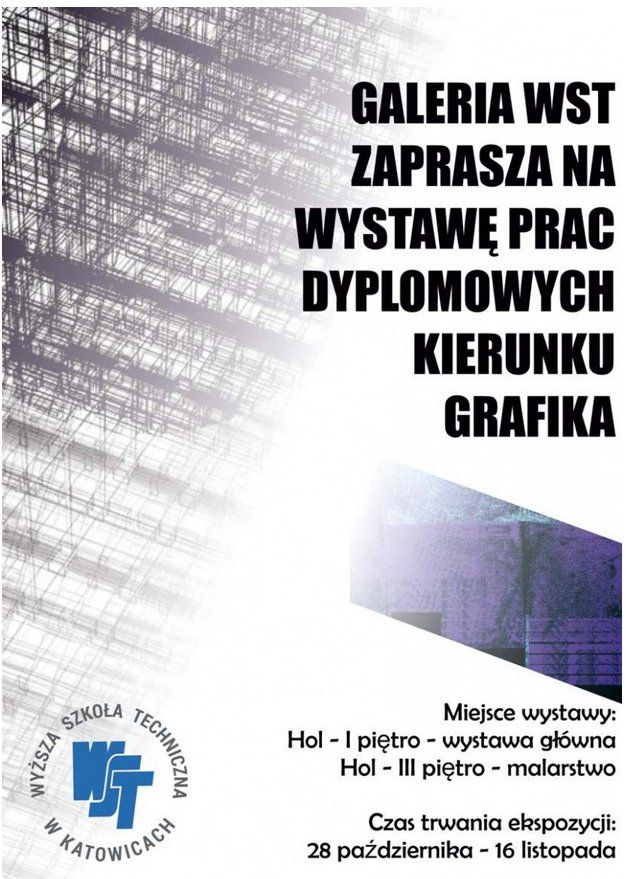 Wystawę prac studentów Grafiki można obejrzeć w siedzibie Wyższej Szkoły Technicznej przy ul. Rolnej 43 w Katowicach w dniach 28.10-16.11.2015.
