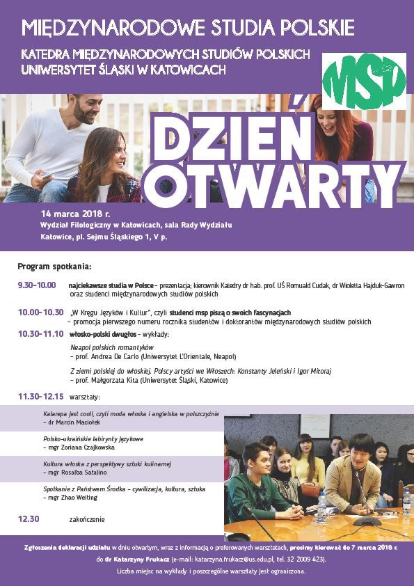 Uniwersytet Śląski organizuje dzień otwarty kierunku Międzynarodowe studia polskie, który odbędzie się 14 marca w sali Rady Wydziału Filologicznego w Katowicach.