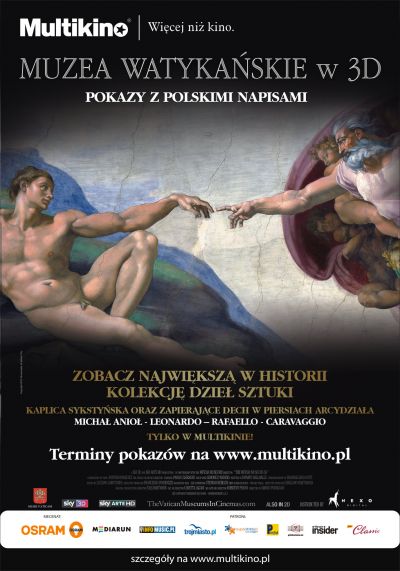 Multikino zaprasza na jedyne pokazy nowatorskiego projektu, wystawy multimedialnej z Muzeów Watykańskich zrealizowanej w kinowej technologii. To wyjątkowa produkcja, którą będzie można zobaczyć na wielkim ekranie tylko w Multikinie. Muzea Watykańskie zwiedzimy w cyfrowym trójwymiarze lub w standardowej wersji 2D. Wszystkie pokazy zarówno 2D jak i 3D będą zrealizowane z polskimi napisami. Zobacz największą w historii kolekcję dzieł sztuki w grudniu w Multikinie!
