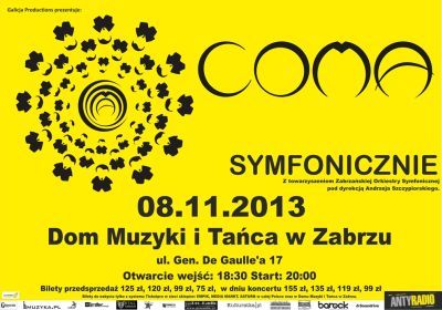 Zabrze – 08.11.2013– Dom Muzyki i Tańca, ul Gen. De Gaulle’a 17. Otwarcie wejść: 18:30 Start: 20:00