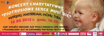 16 grudnia o godz. 18:30 w Wodzisławskim Centrum Kultury. Cały dochód przeznaczony będzie na ratowanie chorego Piotrusia.