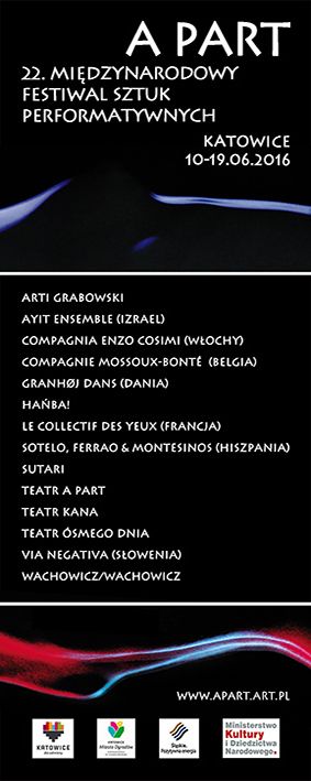 22. MIĘDZYNARODOWY FESTIWAL SZTUK PERFORMATYWNYCH A PART, Katowice, 10-19 czerwca 2016
