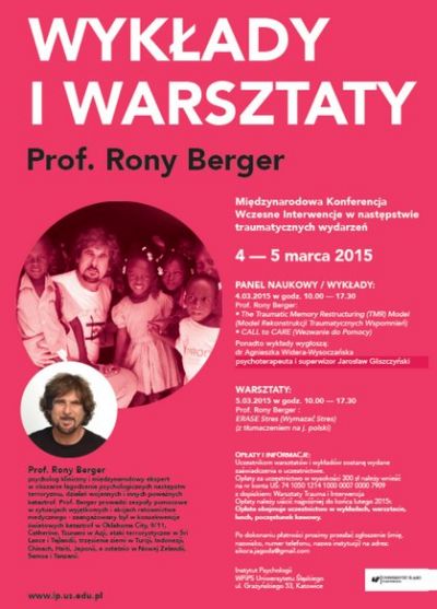 Instytut Psychologii Uniwersytetu Śląskiego organizuje 4 i 5 marca międzynarodową konferencję pt. „Wczesne interwencje w następstwie traumatycznych wydarzeń”. Dr. Rony Berger – międzynarodowy ekspert w obszarze łagodzenia psychologicznych następstw terroryzmu i różnego rodzaju katastrof – poprowadzi wykłady i całodniowe warsztaty przygotowujące do pracy z osobami doświadczającymi traumatycznego, jak i codziennego stresu (zwłaszcza pracy z młodzieżą i dziećmi).